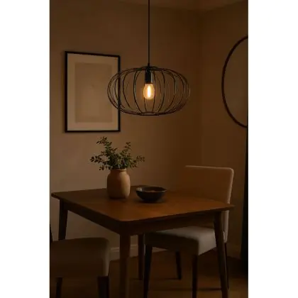 Die D'Lite Pendelleuchte aus der Kemmel-Serie ist ein Qualitätsprodukt zu einem niedrigen Preis. Die Pendelleuchte überzeugt mit einem modernen und ästhetischen Design. Sie besteht aus einem Metallrahmen mit einer Lampenschraube aus Kunststoff. Geeignete Anwendungsbereiche sind beispielsweise Wohn-, Gaststätten- und Büroräume. Hinweis: Die D'Lite Produkte kommen in einer umweltfreundlichen Verpackung (ohne Plastik, stattdessen 100% recycelter Karton) daher. Alle benötigten Befestigungsmaterialien wie Schrauben sind im Lieferumfang enthalten. Jedoch müssen Sie eine E27 Lampe separat kaufen.