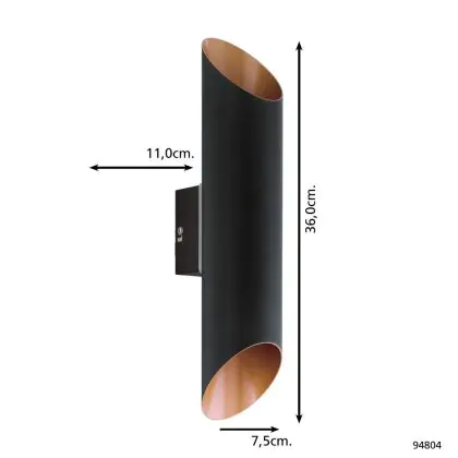 Eglo Wandleuchte Agolada Außenbeleuchtung Verzinkter Stahl Schwarz, Bernstein 7.4W 660lm - 830