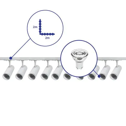 | Herstellername | Complete L shaped 1-Phase Track Set White incl. 10x Spot fixture + GU10 2700K 3W Dim – 2 x 2 meters | |