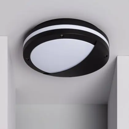 LED-Wand- und Deckenleuchte Natoli Rund Augenlid Schwarz E27 | 300mm - IP54 - Geeignet für 2x 40W E27