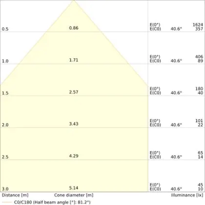 Der Abstrahlwinkel bezeichnet den Winkel, in dem das Licht aus der Lichtquelle ausgestrahlt wird. Er wird in Grad (D) angegeben. Je geringer die Gradzahl des Abstrahlwinkels ist, desto kleiner ist auch der Durchmesser des Lichtkegels, den die Lichtquelle produziert.