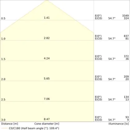 Der Abstrahlwinkel bezeichnet den Winkel, in dem das Licht aus der Lichtquelle ausgestrahlt wird. Er wird in Grad (D) angegeben. Je geringer die Gradzahl des Abstrahlwinkels ist, desto kleiner ist auch der Durchmesser des Lichtkegels, den die Lichtquelle produziert.