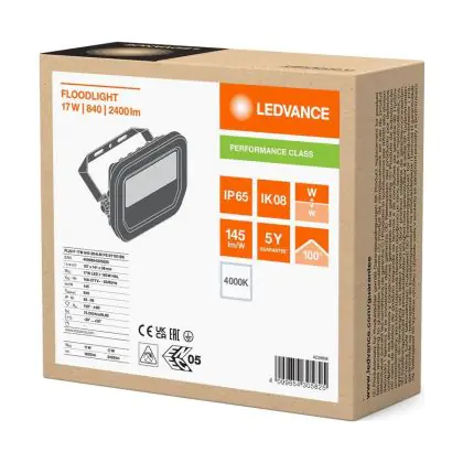 Ledvance Led-Scheinwerfer Aluminium Schwarz 17W 2400lm 100D - 840 | IP66 - Symmetrisch