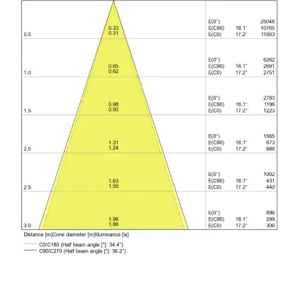 Der Abstrahlwinkel bezeichnet den Winkel, in dem das Licht aus der Lichtquelle ausgestrahlt wird. Er wird in Grad (D) angegeben. Je geringer die Gradzahl des Abstrahlwinkels ist, desto kleiner ist auch der Durchmesser des Lichtkegels, den die Lichtquelle produziert.