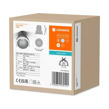 | Herstellername | LED SPOT RECESS TWIST PRO 70mm 5W 4000K White Silver | |