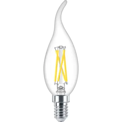 Mehrfachpackung 10x Philips MASTER LED E14 Gebogen-tip Kerze Fadenlampe Klar 2.5W 340lm - 922-927 Dim To Warm | Höchste Farbwiedergabe - Dimmbar - Ersatz Für 25W