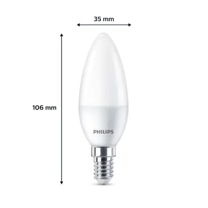 Mehrfachpackung 6x Philips Glühbirne LED E14 Kerze Matt 5W 470lm - 827