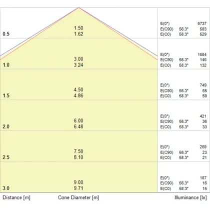 Der Abstrahlwinkel bezeichnet den Winkel, in dem das Licht aus der Lichtquelle ausgestrahlt wird. Er wird in Grad (D) angegeben. Je geringer die Gradzahl des Abstrahlwinkels ist, desto kleiner ist auch der Durchmesser des Lichtkegels, den die Lichtquelle produziert.