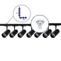 Description Ensemble complet Rail Monophasé Rail L 1,5 x 2 Mètre Noir | incl. 7x Spot + GU10 2700K 3W Dimmable + Embout, Connecteur d’Alimentation et L -Connecteur