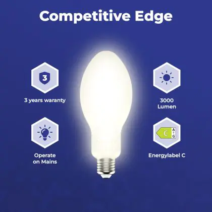 Description LED HID Elliptique E27 18W 3000lm - 840 Blanc Froid | Remplacement 50W