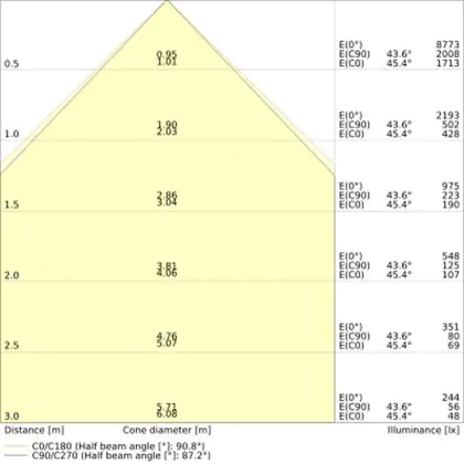L'indice d'éblouissement unifié (UGR) indique dans quelle mesure la lumière d'un produit est aveuglante. Cette valeur change en fonction du domaine d'application et doit être conforme aux normes européennes (Norme EN 12464-1). Une faible valeur UGR signifie un faible facteur d'éblouissement. Pour les bureaux et les écoles, l'éclairage avec une valeur UGR<19 est obligatoire et pour les zones publiques un UGR<22. Dans notre blog, vous trouverez de plus amples informations sur l'UGR.