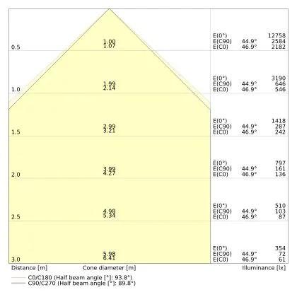 Le code couleur se compose de l'indice de rendu des couleurs (IRC) et de la température de couleur (Kelvin). Le premier chiffre indique le rendu des couleurs (1 = très mauvais rendu des couleurs, 9 = meilleure authenticité des couleurs). Le deuxième et troisième chiffre indiquent la température de la couleur. Exemple : Le code couleur "830" indique que la lampe a un bon rendu des couleurs (8) et une couleur de lumière blanche chaude (30 = 3000K). |