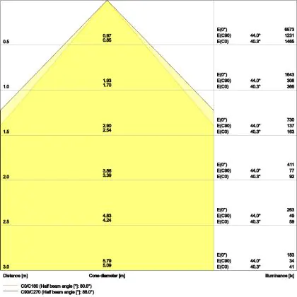 Le code couleur se compose de l'indice de rendu des couleurs (IRC) et de la température de couleur (Kelvin). Le premier chiffre indique le rendu des couleurs (1 = très mauvais rendu des couleurs, 9 = meilleure authenticité des couleurs). Le deuxième et troisième chiffre indiquent la température de la couleur. Exemple : Le code couleur "830" indique que la lampe a un bon rendu des couleurs (8) et une couleur de lumière blanche chaude (30 = 3000K). |