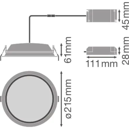 Description Ledvance Spot encastrable LED Alu DN200 25W 2250lm 100D - 830 | 215mm - IP44 - Dali Dimmable