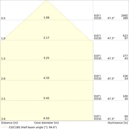 • Angle de diffusion: 95 °