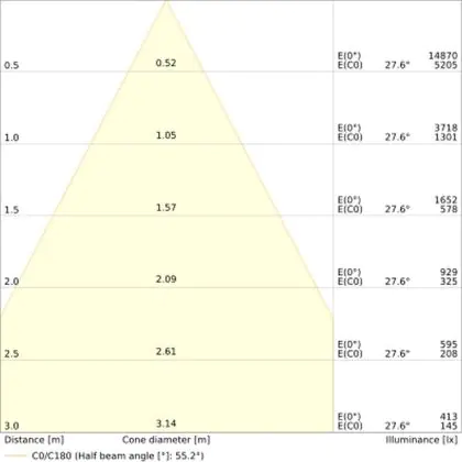 • Angle de diffusion: 55 °
