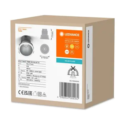| Nom du fabricant | LED SPOT RECESS TWIST PRO 70mm 5W 3000K White Silver | |