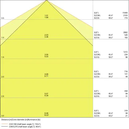 Le code couleur se compose de l'indice de rendu des couleurs (IRC) et de la température de couleur (Kelvin). Le premier chiffre indique le rendu des couleurs (1 = très mauvais rendu des couleurs, 9 = meilleure authenticité des couleurs). Le deuxième et troisième chiffre indiquent la température de la couleur. Exemple : Le code couleur "830" indique que la lampe a un bon rendu des couleurs (8) et une couleur de lumière blanche chaude (30 = 3000K). |