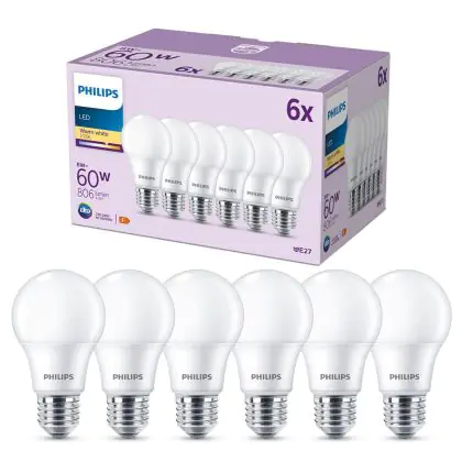 Lot 6x Philips Ampoule LED E27 Poire Dépolie 8W 806lm - 827