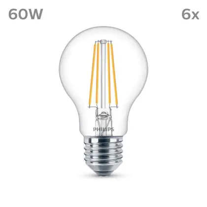 Description Lot 6x Philips Ampoule LED E27 Poire Filament Claire 7W 850lm - 840