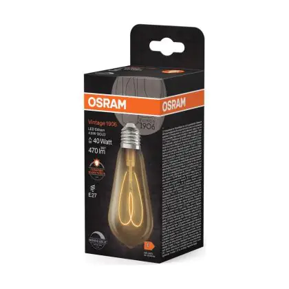 Cette ampoule Osram Vintage 1906 LED E27 Edison Filament Dorée 4.9W 470lm - 922 | Meilleur Rendu De Couleur - Dimmable - Remplacement 40W avec son efficacité lumineuse de lumen par watt vous permettra de profiter d’un éclairage de qualité. Avec sa durée de vie de 15000 heures, vous n’aurez pas à vous soucier de son remplacement avant quelques années.