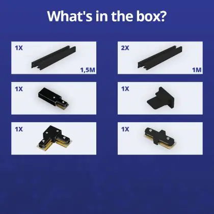 Rail Set Rail Monophasé L 1,5 x 2 Mètre Noir | incl. Embout, Connecteur d’Alimentation et L -Connecteur