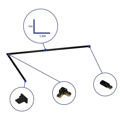 Rail Set Rail Monophasé L 1 x 1,5 Mètre Noir | incl. Embout, Connecteur d’Alimentation et L -Connecteur