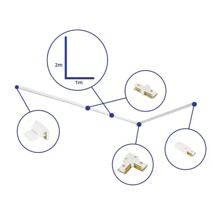 Rail Set Rail Monophasé L 1 x 2 Mètre Blanc | incl. Embout, Connecteur d’Alimentation et L -Connecteur